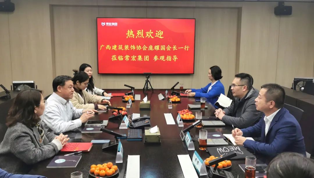 2023年3月25日,廣西建筑裝飾協(xié)會會長龐耀國、秘書長譚謙,河北省建筑裝飾業(yè)協(xié)會副會長焦運卿以及廣西建筑裝飾協(xié)會會員企業(yè)代表到訪常宏集團考察調(diào)研。常宏集團董事總經(jīng)理王躍、常宏智能科技董事總經(jīng)理崔搖、常宏裝飾行政總監(jiān)王瀟等接待了考察團一行。