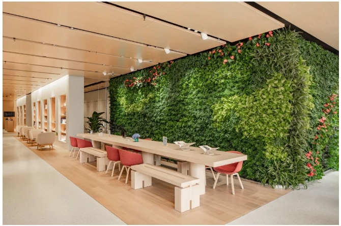 層層疊疊的綠色植物墻和兩面觀景落地窗構(gòu)成了一個(gè)獨(dú)屬聚會(huì)的空間,和朋友們來(lái)一場(chǎng)走心的分享吧!