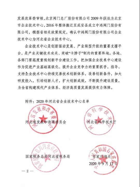 河北省發(fā)展和改革委員會、河北省科學(xué)技術(shù)廳、國家稅務(wù)總局河北省稅務(wù)局、石家莊海關(guān)四部門發(fā)布2020年河北省企業(yè)技術(shù)中心認(rèn)定名單的通知,常宏被認(rèn)定為河北省企業(yè)技術(shù)中心。