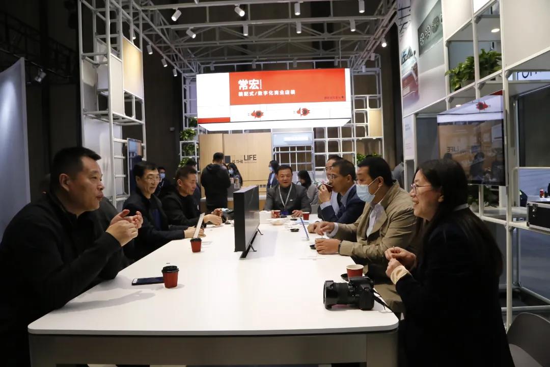 河北省風(fēng)景園林學(xué)會(huì)副理事長兼規(guī)劃設(shè)計(jì)委員會(huì)主任鄭占峰先生、雄安城市規(guī)劃設(shè)計(jì)研究院總工程師夏雨女士、河北省工業(yè)設(shè)計(jì)協(xié)會(huì)秘書長于俊卯先生、河北省建筑科學(xué)研究院副院長邊智慧先生、孫錚室內(nèi)設(shè)計(jì)工作室設(shè)計(jì)總監(jiān)孫錚先生、蕉林・茶書屋創(chuàng)始人張迎軍先生、格藝晟景觀總經(jīng)理趙紅女士等一行到訪常宏展位。