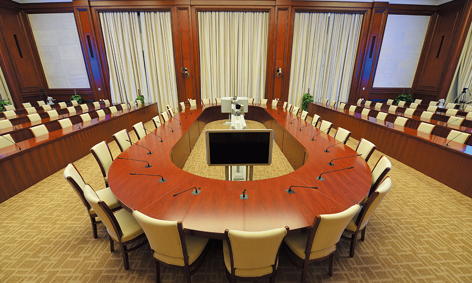 位于北京東城區(qū),經(jīng)過半個多世紀(jì)的風(fēng)雨洗禮,見證了北京的輝煌與成就的同時,也經(jīng)受著歲月地雕琢,為了能更好的開展日常政務(wù)活動,為社會公眾提供更多優(yōu)質(zhì)的服務(wù),信息智能化系統(tǒng)需改造升級。新系統(tǒng)要求要滿足召開市委常委會、專題會、中心理論組學(xué)習(xí)、大型報(bào)告會、電視電話會等日常會議智能化需求,此外還要滿足貴賓接待、新聞發(fā)布、簽字儀式、資料放映、舞臺演出等要求,并實(shí)現(xiàn)高清視頻、高保真還音、大屏幕顯示、信號調(diào)度、觸摸互動、電影放映、會場監(jiān)看、錄音錄像、視頻會議、同聲傳譯等功能,能夠通過網(wǎng)絡(luò)化管理和智能集中控制。
